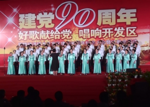 6月2日晚上的翠湖廣場,燈火璀璨,微風徐徐。銅陵經濟技術開發區舉辦的“好歌獻給黨 唱響開發區”喜迎建黨90周年紀念大會暨紅歌會在這里隆重舉行。 天奇藍天與銅冠機械組成的聯合代表隊參加了活動,以歌曲《歌唱祖國》和《團結就是力量》抒發了企業員工對黨的深情厚愛和對銅陵經濟技術開發區晉升國家級開發區的喜悅心情。